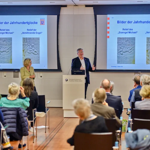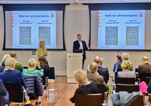 Vortragsveranstaltung am 5.10.2023 in Kooperation mit der Handwerkskammer Frankfurt-Rhein-Main. Vortrag von Dr. Alexander Jehn, Direktor der Hessischen Landeszentrale für politische Bildung. Die Geschichte der Paulskirche hat viele Facetten. Eine davon betrifft fünf Kirchenglocken, die 1948 im Rahmen des Wiederaufbaus gestiftet wurden und vom Glauben an den gesamtdeutschen demokratischen Neubeginn Zeugnis ablegten.