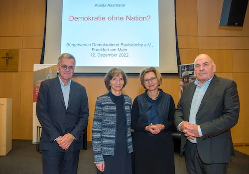 Am 12. Dezember 2022 referierte Prof. Dr. Aleida Assmann, Friedenspreisträgerin des Deutschen Buchhandels, zum Thema „Wieviel Nation braucht unsere demokratische Ordnung?“.